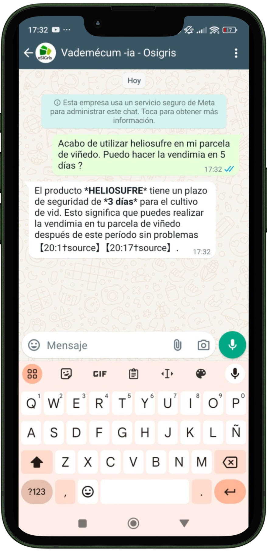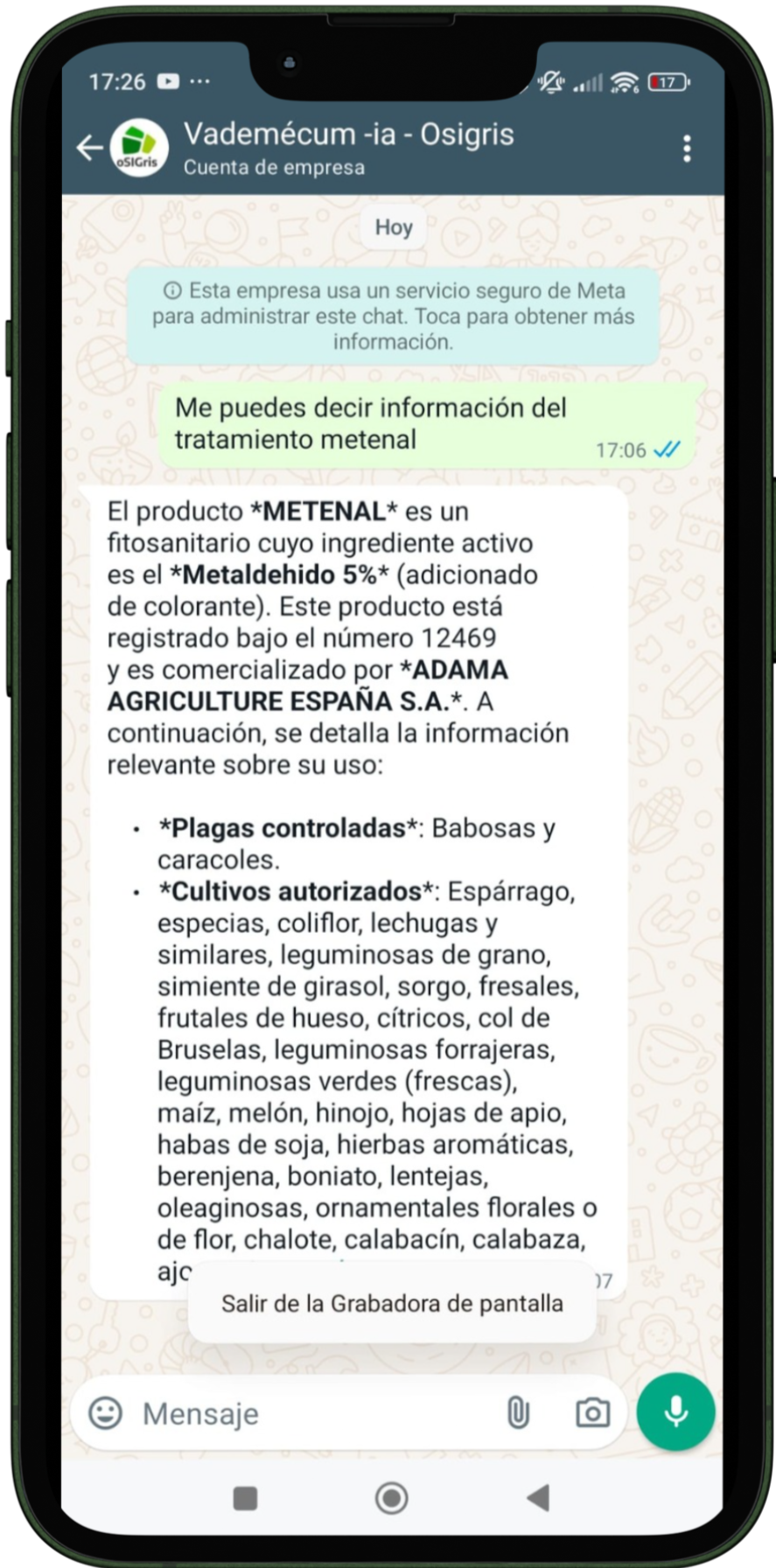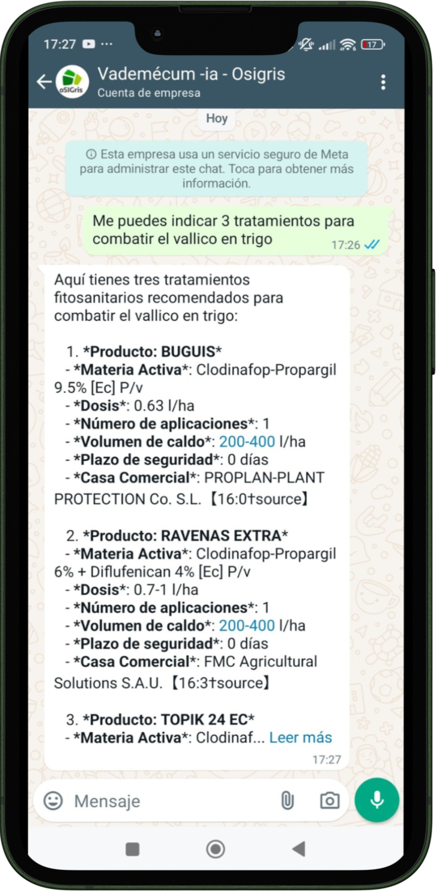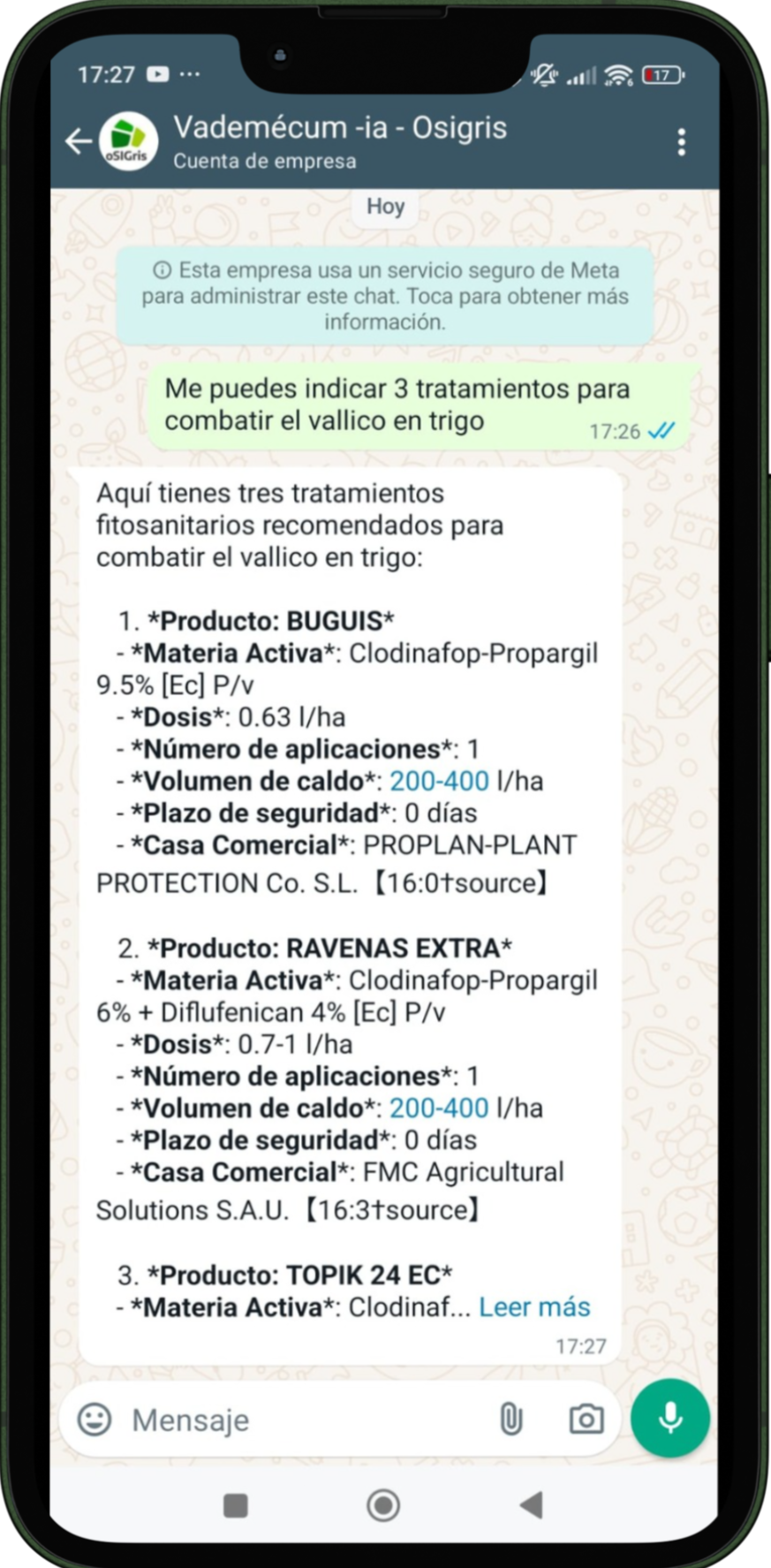 Prueba desde WhatsApp como te responde la Inteligencia Artificial💻sobre cualquier producto fitosanitario del Mapama